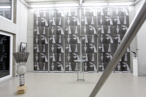 Viele ihrer Raumarbeiten, so auch jene in der Ausstellung im TANK GrafZyxFoundation, stehen in einem politischen Kontext und spiegeln in Titel und formaler Umsetzung Schellanders charakteristische, pointiert-ironische Sicht des Zeitgeschehens wider. Aus einer inneren Mitte heraus vereint Meina Schellander in großer Komplexität das, was sie in ihrem Leben sieht, aufnimmt, wonach sie forscht und woran sie sich reibt. „Die Zukunft holt mich ein, während ich die Vergangenheit reflektiere und über die Gegenwart stolpere.“ [4]
