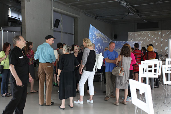 Und zum anderen, an der linken Seitenwand vorne: die Rudel-Flucht der Bilderrahmen – leere Holzrahmen, mit weißer Gaze umwickelt, auf dünnen Stahldrahtbeinen, die in hektischem Gedränge, im leicht chaotischen Lauf-Pulk dem Ausgang zustreben. Bilderrahmen-Kunst hat hier keinen Platz – das hat die Künstlerin mit dieser Objektgruppe visualisiert, als Zustand subtil sichtbar gemacht. Solch feiner Witz, solche auch selbstironische Leichtigkeit, die Situationen und Sachverhalte auflösende Ambivalenz – all das sind durchgängige Konstante im Œuvre, im Werk einer vielseitigen Künstlerin.