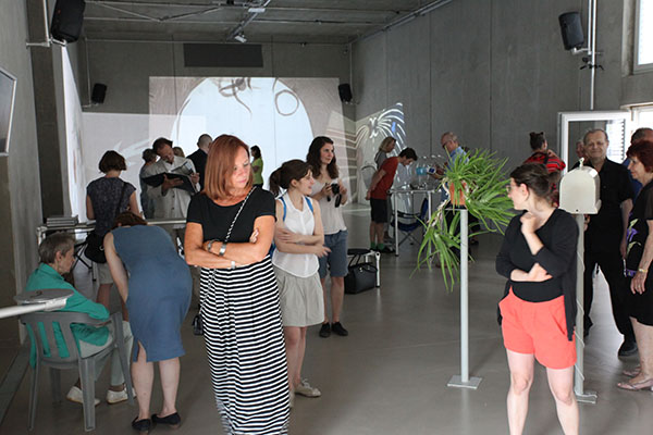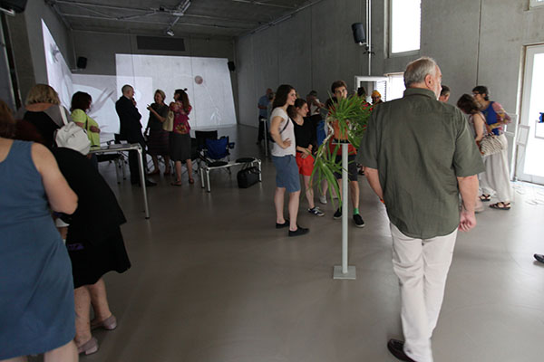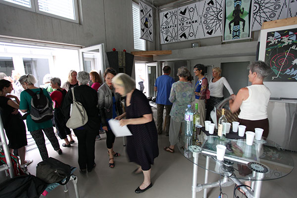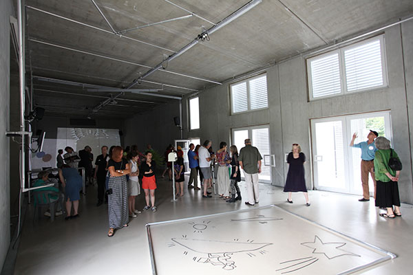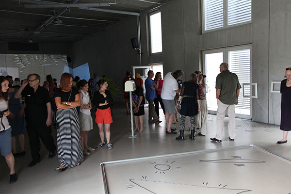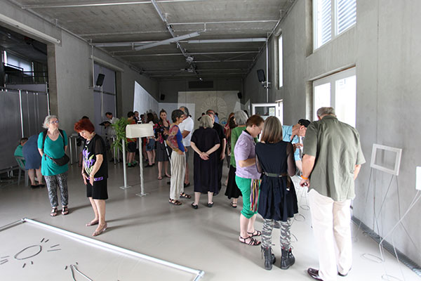 Auf den ganz anderen Raum, die bündige Beton-Architektur der Halle hier in Neulengbach hat Kordon, wie schon angedeutet, ebenfalls speziell reagiert. Dieser glasklar geformte Graf+Zyx Tank ist doch ein Think Tank, eine Versuchsstation zum Nachdenken darüber, was Kunst heute sein sollte oder könnte. Wir erinnern uns: die klassische Moderne negierte das Bild, die Statue und dergleichen als ästhetische, objekthafte Ware und wollte mit Kunst direkt ins Leben, in Lebensäußerungen und -zustände eingreifen. In der Richtung gibt wohl auch diese Halle ein Statement, eine Richtschnur. An den Sichtbetonwänden kann nichts befestigt werden, kein Nagel eingeschlagen werden, nichts angeklebt werden. Es gibt keine Lichtdecke wie im üblichen White Cube, und auch der Boden ist tabu. Es ist ein beschichteter Betonboden, auf dem man gehen und was hinstellen kann, wo aber nichts mechanisch fixierbar ist. Es ist also ein Kunstraum, der die konventionelle Kunstform verwehrt, und darum ist es in Wahrheit ein Laboratorium, um sich damit auseinanderzusetzen und zu zeigen, wie man darauf antworten kann.