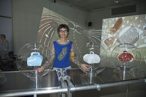 Das Potential der autonomen, der frei agierenden Linie hat Renate Kordon immer gepflegt. Die Linie ist eine primäre menschliche Kulturleistung, eine Abstraktion, die alles sein kann, vieles bedeuten kann – und genau das manifestiert sich überall in Kordons Arbeit. In vielfältigen Medien und Maßstäben kommentiert sie die ständige Bewegung unserer Wahrnehmung und der sie begleitenden Gedanken – und irritiert sie zugleich deren normative Bedeutungsmuster. Im Trickfilm findet dieses vibrierend Bewegte, der vitale und unberechenbare Bewegungsdrang der Linien ins ideale Metier. Es war dies das Thema ihres ersten großen Trickfilms 1980 – Hors d’œuvre. In Neulengbach zeigt sie davon eine miniaturisierte Fassung als digitale Film-Brosche, präsentiert in Spezial-Verpackung, schwebend unter Plexiglaskugeln. Eine davon sehen Sie, in Aktion, am Revers meines Sakko. Hors d’œuvre, fünf Minuten lang, ist die pausenlose Metamorphose eine simplen Linie, die mit den unwahrscheinlichsten Formen spielt – und mit unseren Sehgewohnheiten. Aus einem hüfthohen Stoß von Zeichnungen auf A-4-Papieren wurde da ein Kunstwerk, das als solches kein Objekt mehr ist, sondern Film – eine Illusion, „real“ für unser Empfinden – und zugleich gänzlich ungreifbar in Raum und Zeit.
