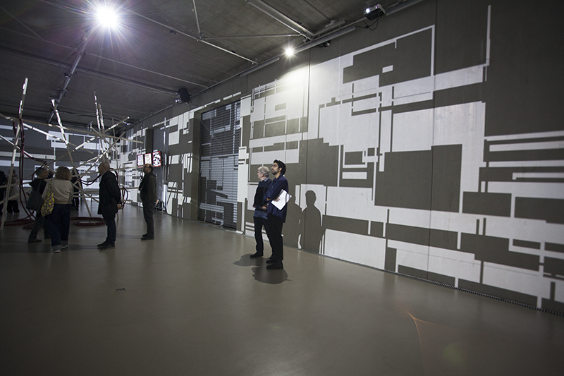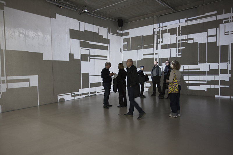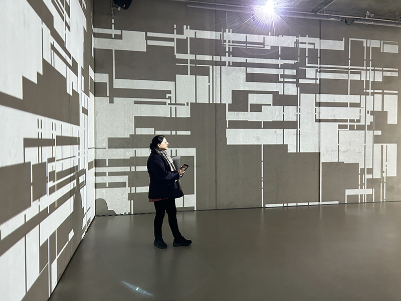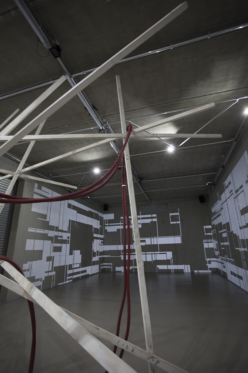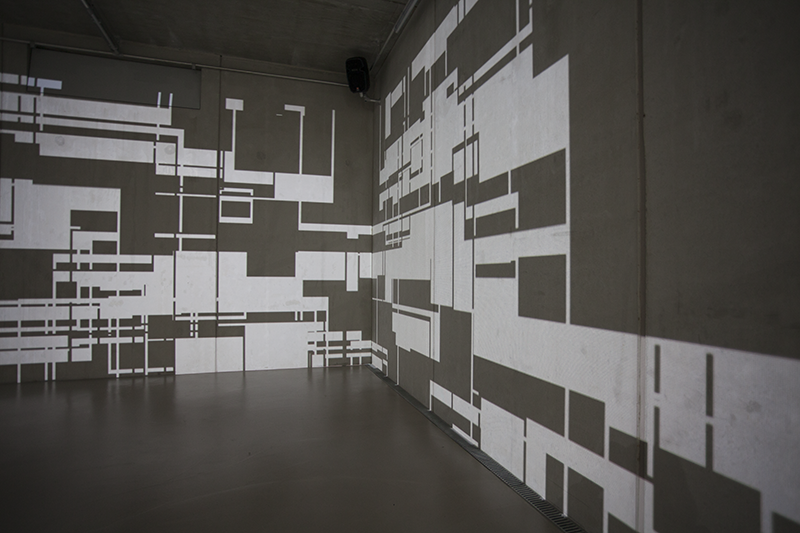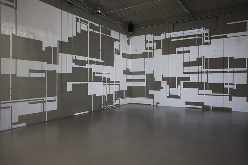 LIA hat die Arbeit vor einigen Jahren an der Fassade eines Museums in Taipeh installiert, wo man allein aufgrund der Blickbewegung von unten nach oben großstädtischen Strukturen assoziiert. Hier im Innenraum werden solche konkreteren Assoziationen (von Schaltkreisen bis zu einem Maschinenraum) beim längeren Hinsehen immer stärker von den wahrnehmungsspezifischen Auswirkungen – wie der Auflösung der Linearität der Bilder bis hin zur Instabilität der gewohnten Raumkoordinaten – abgelöst.