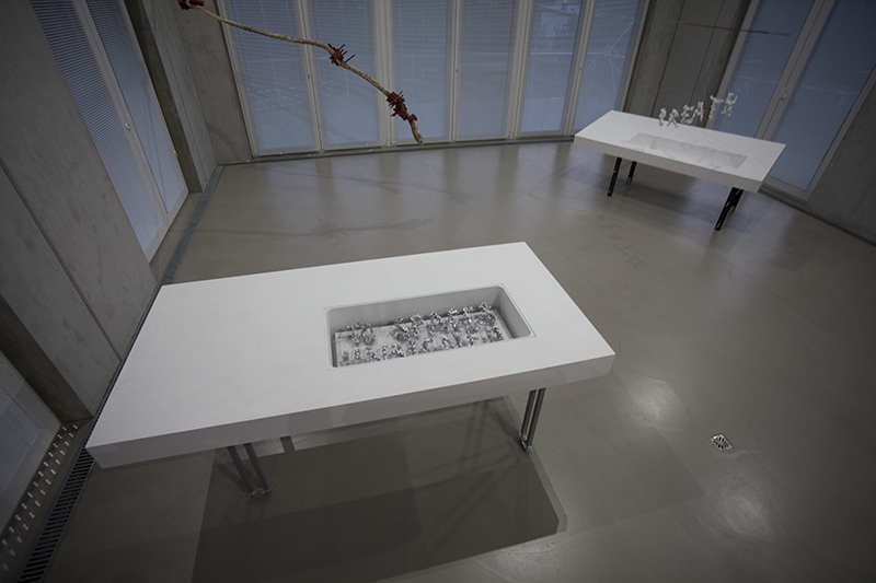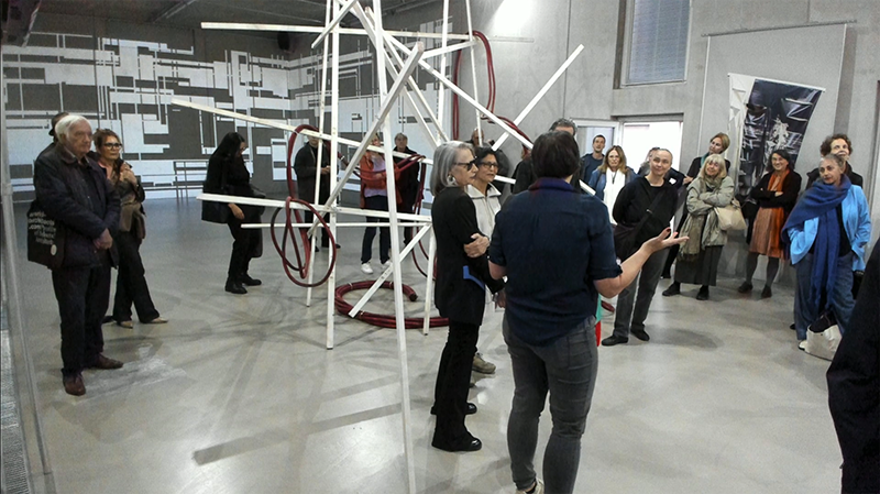 Die hier präsentierte Version aus der Reihe Echo Location mit dem Titel A Parasitic Construction of Space verweist auf eine weitere Dimension: „Echo Ortung“ meint eigentlich die Fähigkeit von Tieren, etwa Fledermäusen, Schallwellen auszusenden und aufgrund ihres Echos den sie umgebenden Raum, Hindernisse, Nahrung etc. im Dunklen orten zu können.